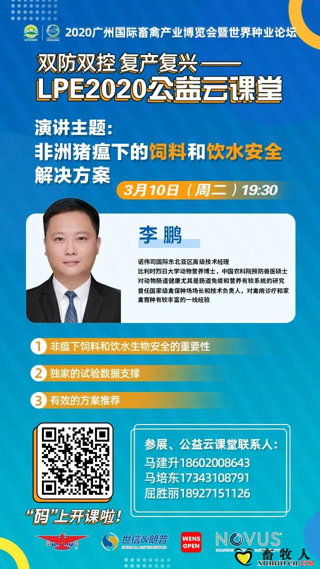 正文摘要:觀看方式:1.LPE國(guó)際畜禽博覽會(huì)公眾號(hào)→云課堂2.掃描直播海報(bào)上的二維碼→直播間3.溫氏華農(nóng)養(yǎng)豬訓(xùn)練營(yíng)公眾號(hào)→直播間 直播預(yù)告: 同心戰(zhàn)“疫”,共克時(shí)艱,為了更好地服務(wù)畜禽產(chǎn)業(yè)企業(yè)及從業(yè)者,2020廣州國(guó)際 ... |