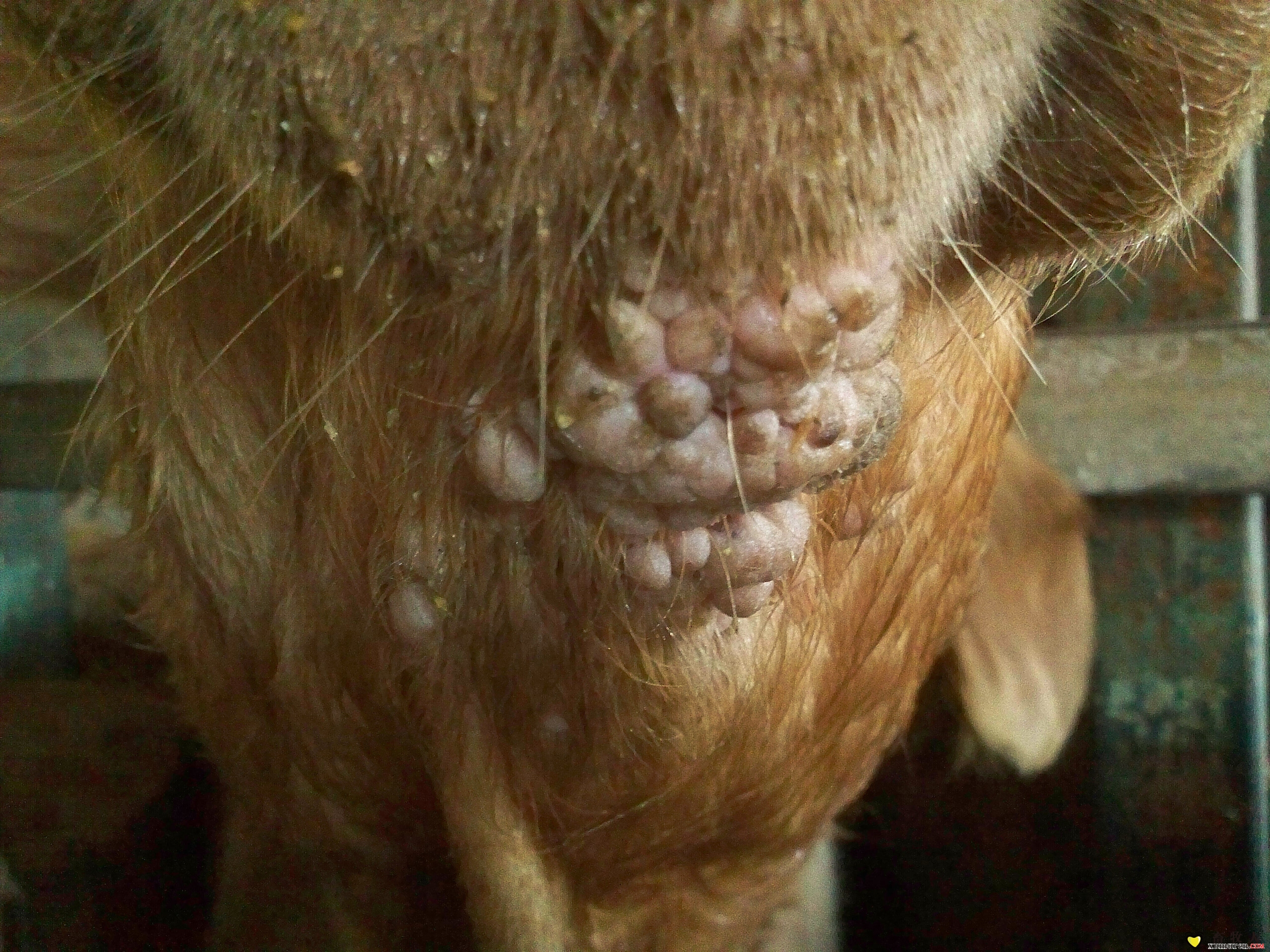 牛下巴長得是什么?那位老師給看看。 吃喝正常,下巴長了一隊肉疙瘩,耳朵里和脖子上有結疤。這是什么病啊?