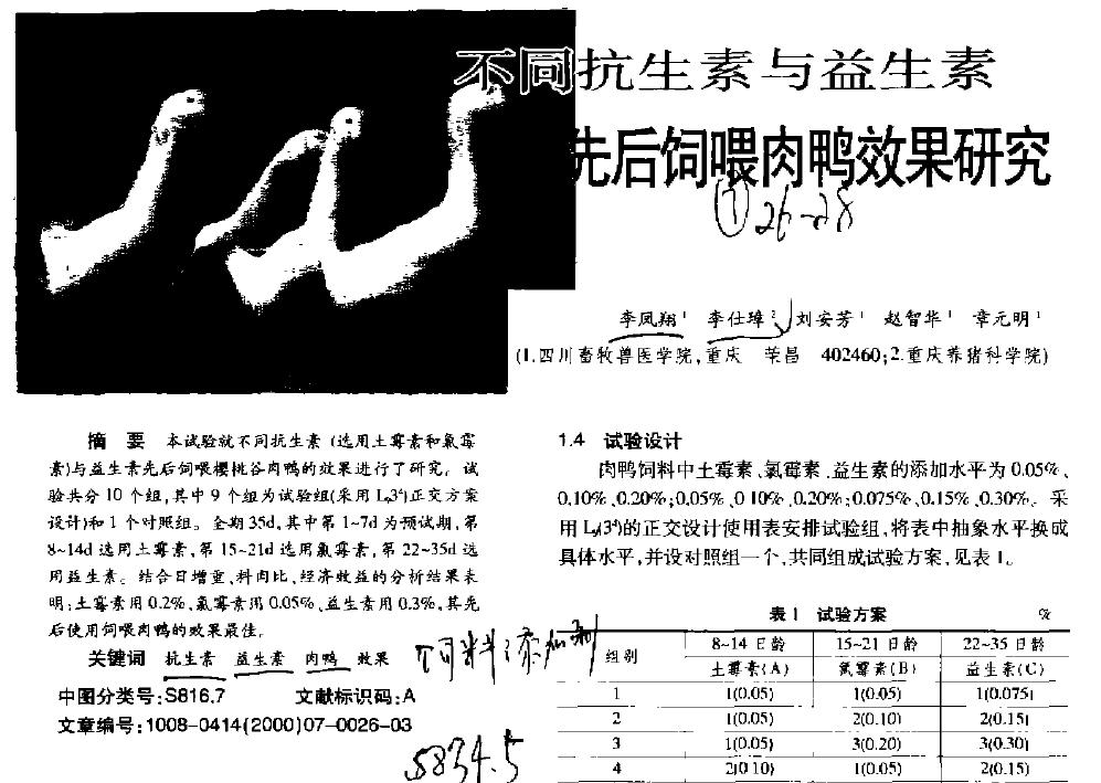 不同抗生素與益生素先后飼喂肉鴨效果研究 |