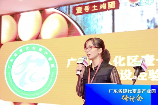 廣東壹號食品股份有限公司項(xiàng)目發(fā)展部總監(jiān)羅艷鳳介紹廣州市從化區(qū)壹號蛋雞產(chǎn)業(yè)園